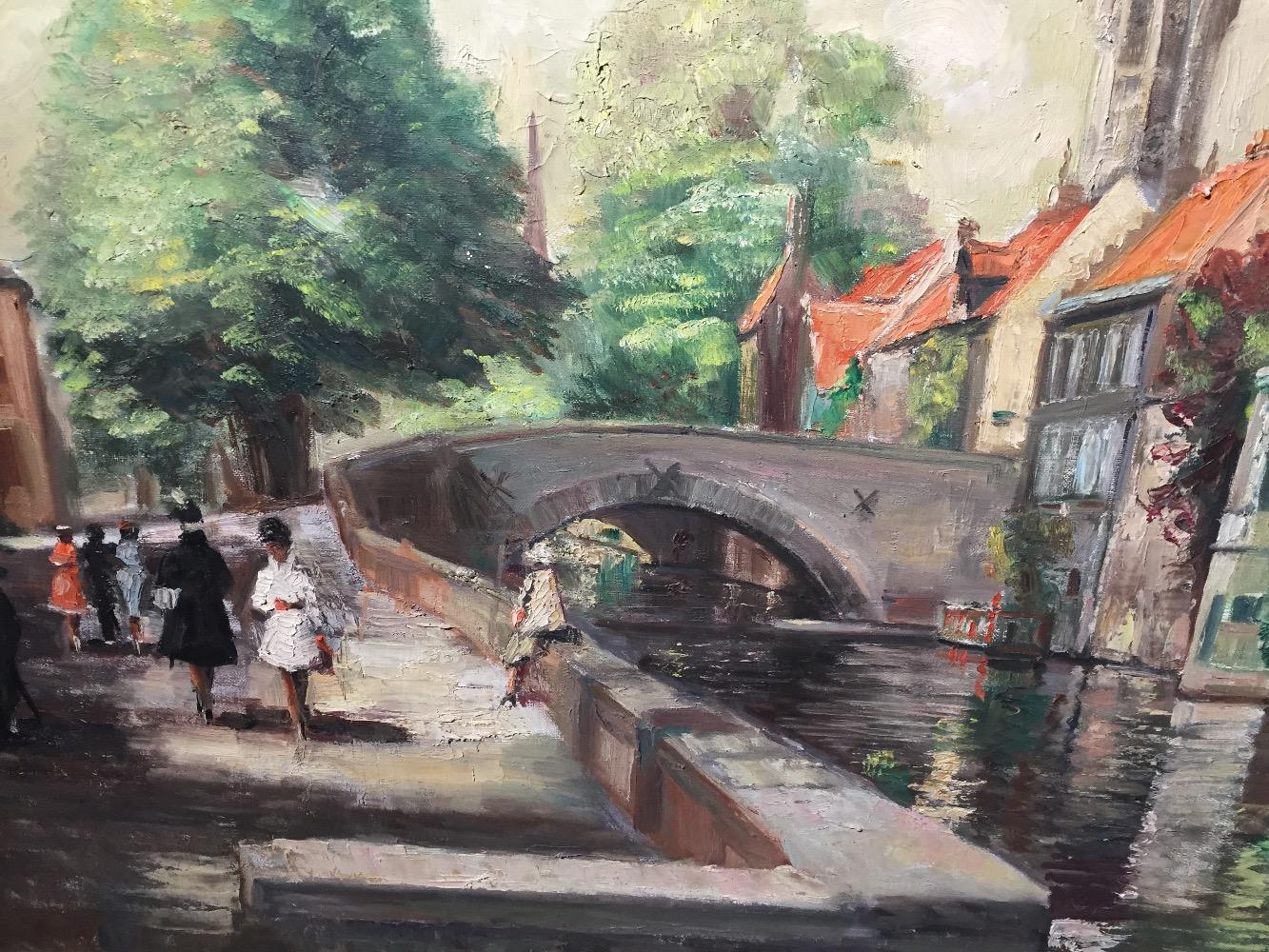 Walking along the canals in Bruges ( oil on canvas)