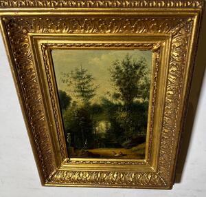The artist painter in the park in the summertime ( oil on canvas )