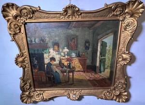 The clothmaker at work in the summertime ( oil on canvas )