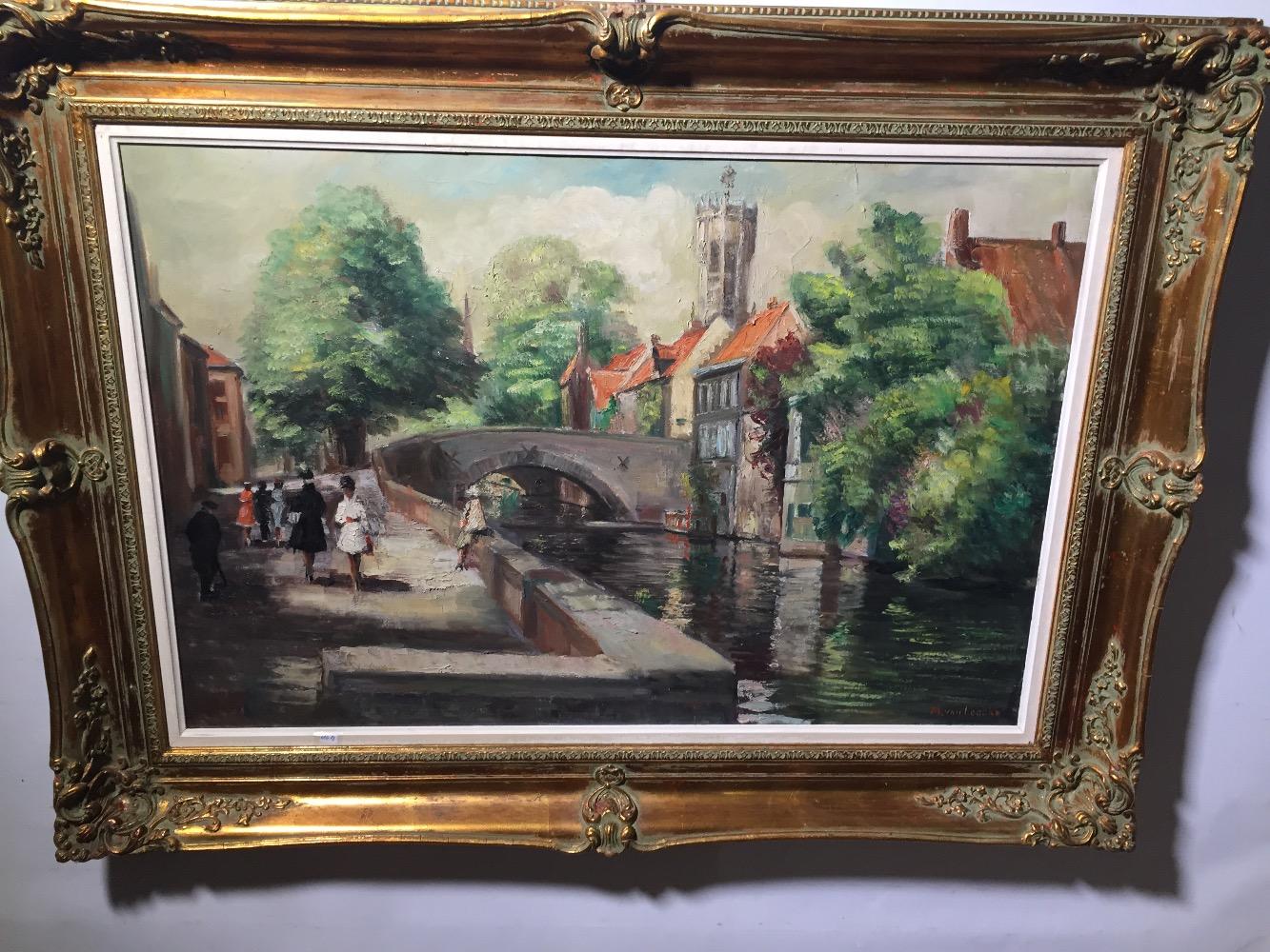 Walking along the canals in Bruges ( oil on canvas)