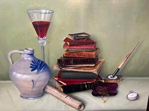 STILLIFE WITH BOOKS ( OIL ON PANEL )