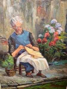 The seamstress in Bruges ( oil on panel )